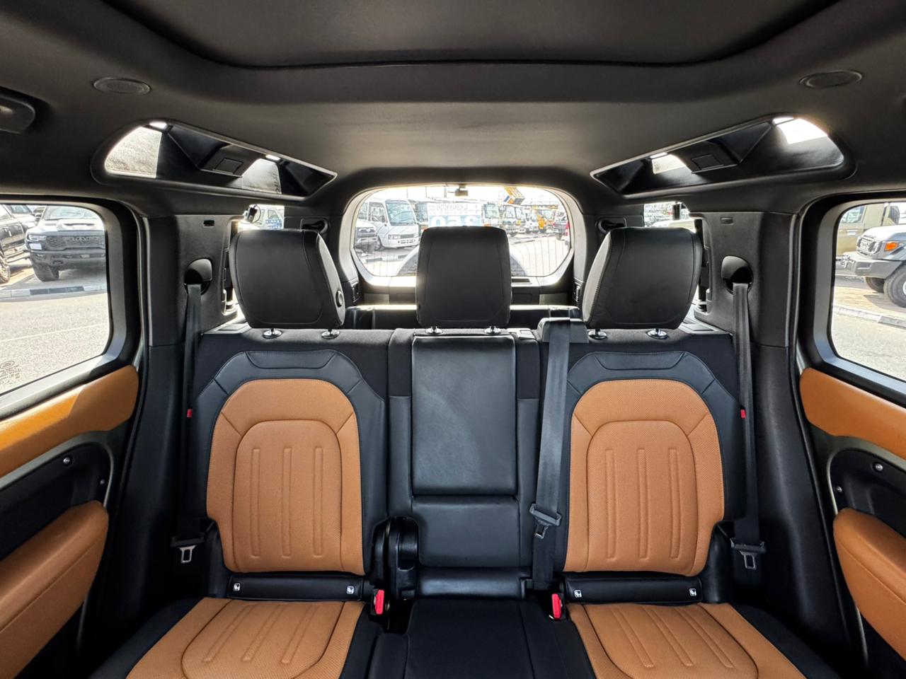 Design: Rugged Defender styling with high ground clearance and reinforced bumpers